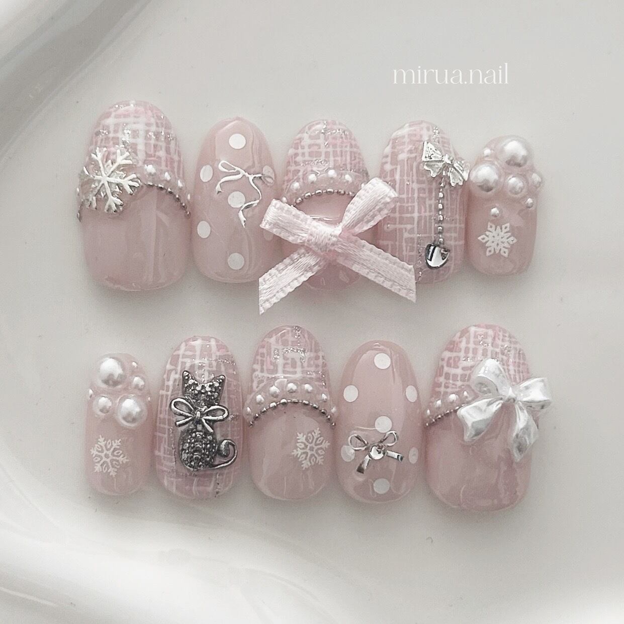 【size order】tweed pink × ribbon snow cat【m228