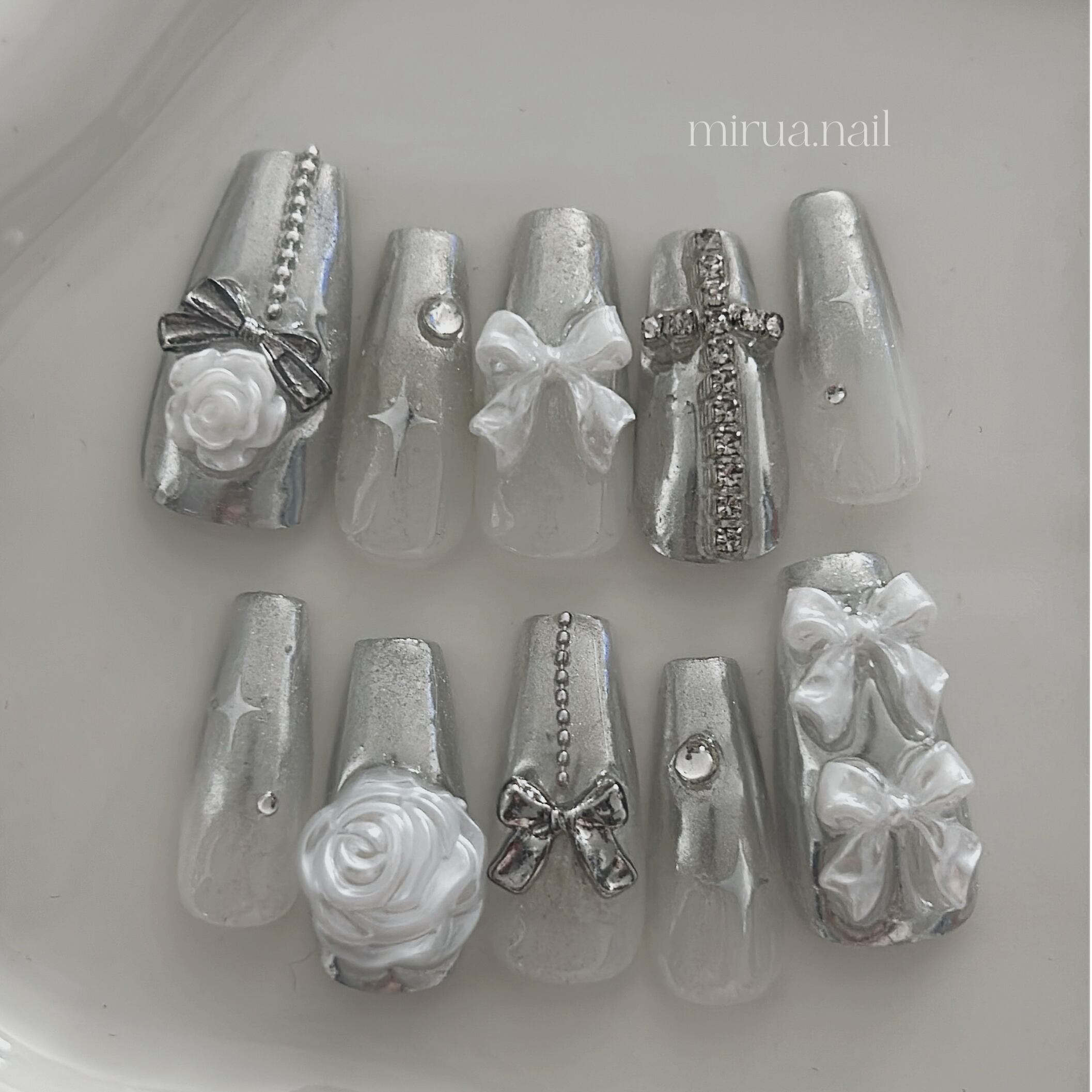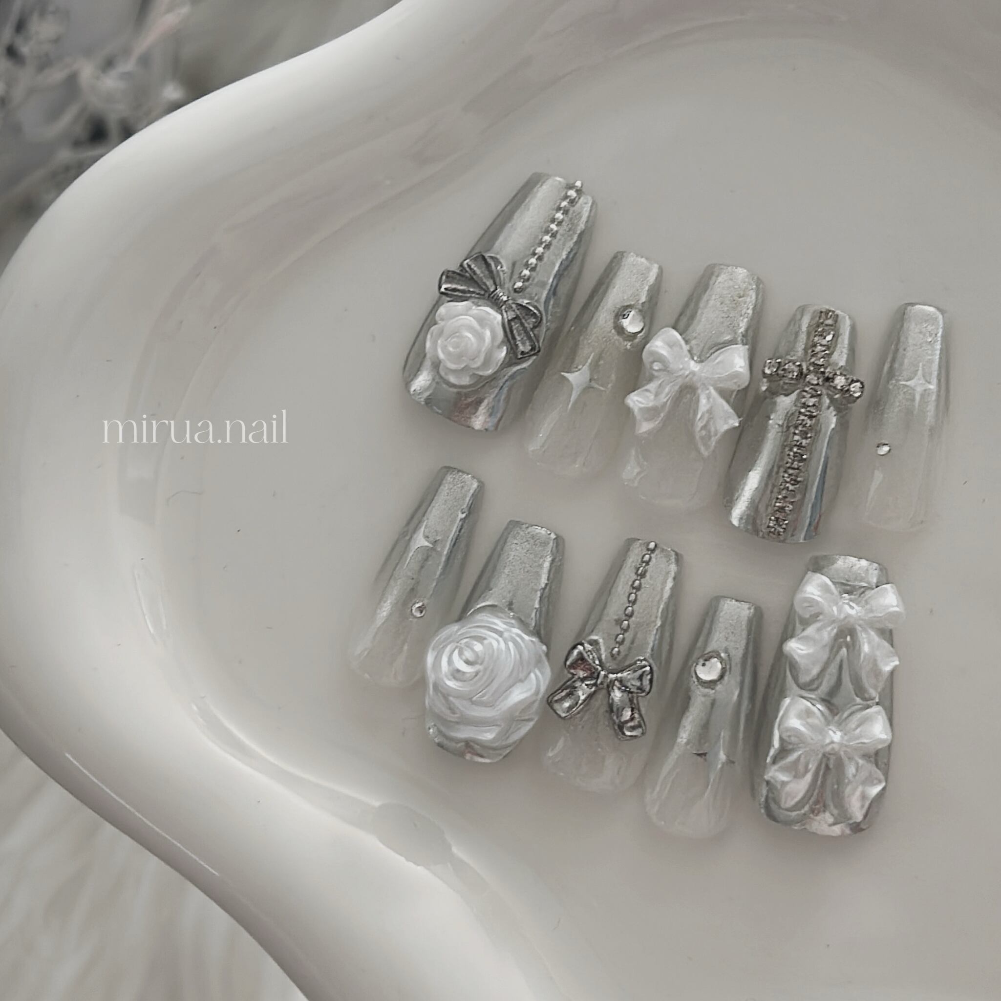 【size order】white × silver × rose ribbon y2k 【m233】